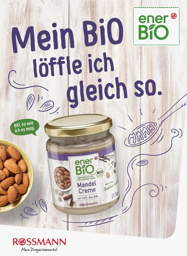 Unter dem Motto: „Bio, so wie ich es mag“ legten wir als erste Foodmarke im Drogeriemarkt den kommunikativen Fokus auf Leichtigkeit und Unbekümmertheit. Im Rahmen einer crossmedialen Kampagne etablierten wir enerBiO so als Marke, die in jeden Alltag passt und jede Menge Spaß macht. „Mein Bio“ eben.